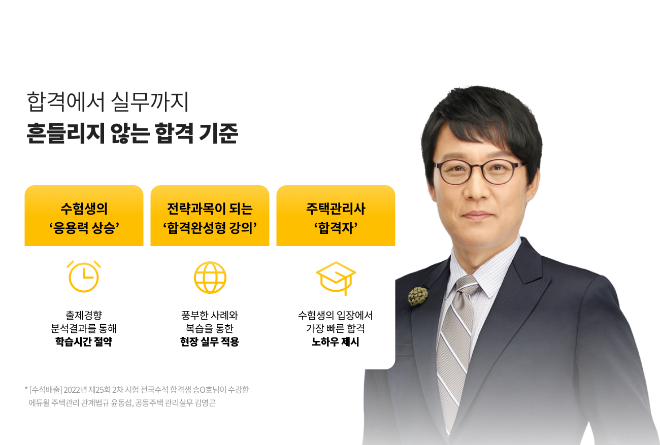 * [수석배출] 2022년 제25회 2차 시험 전국수석 합격생 송O호님이 수강한 에듀윌 교수 주택관리 관계법규 윤동섭, 공동주택 관리실무 김영곤