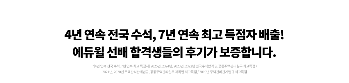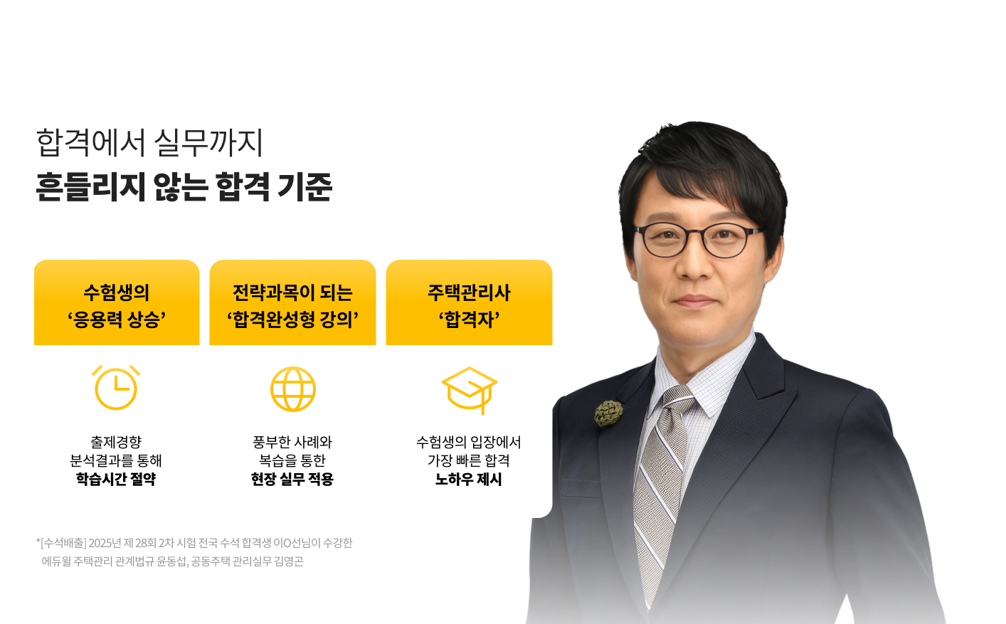 * [수석배출] 2025년 제 28회 2차 시험 전국 수석 합격생 이O선님이 수강한 에듀윌 교수 주택관리 관계법규 윤동섭, 공동주택 관리실무 김영곤