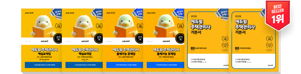 * [1위] 2023 대한민국 브랜드만족도 주택관리사 교육 1위(한경비즈니스) * [수석배출] 2025년 제 28회 2차 시험 전국 수석 합격생 이O선님이 수강한 에듀윌 주택관리관계법규 윤동섭, 공동주택관리실무 김영곤